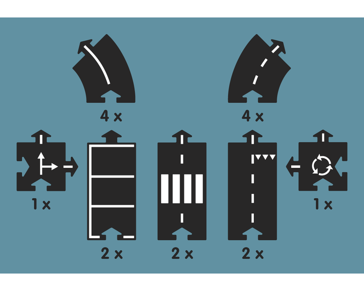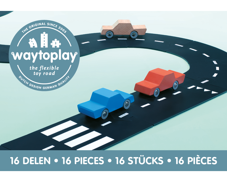 Das am meisten verkaufte waytoplay-Set mit 16 Straßenteilen. Die waytoplay Schnellstraße ist ein hervorragendes Spielzeug für ein fantasievolles Spielen. Sehen Sie Ihren Kindern dabei zu, wie sie für ihre Lieblingsspielzeuge und Autos ihre eigenen Rundkurse und Straßenverläufe bauen.