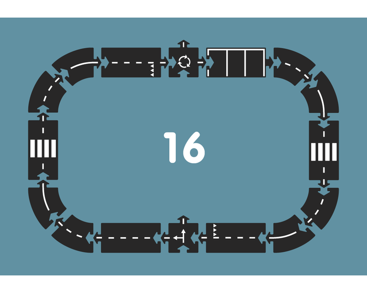 Beinhaltet 8 Kurven, 6 Geraden, 1 Kreuzung und 1 Kreisverkehr.