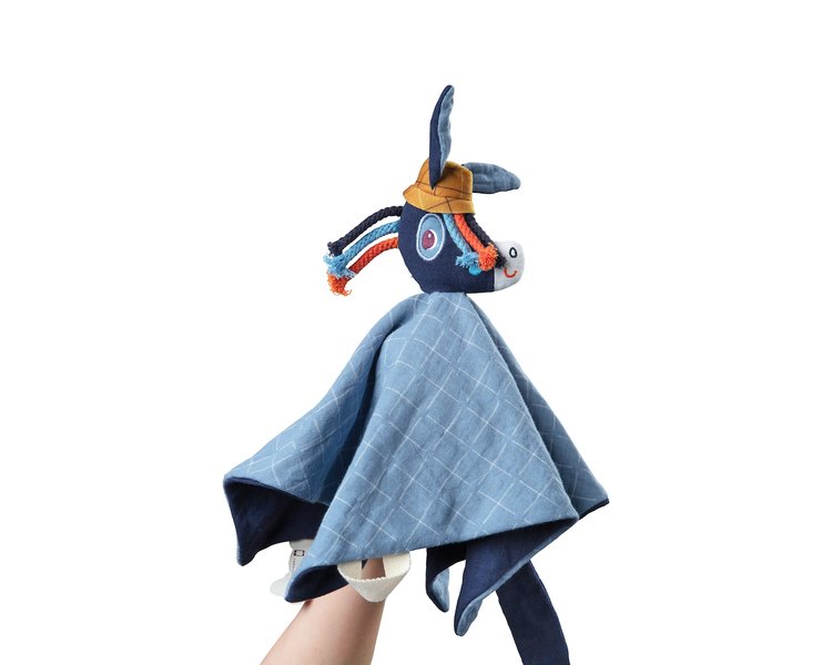Dieses Schnuffeltuchtier aus Bio-Baumwolle ist das optimale Trösterchen für Krabbelkinder. Der Kopf ist eine Fingerpuppe und die Druckknopf-Lasche ermöglicht das Befestigen des Schnullers.