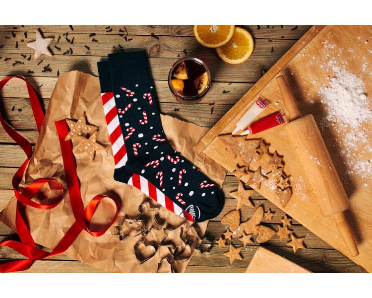 Weihnachten dreht sich nicht nur um Süßigkeiten. Wir können jedoch nicht leugnen, dass sie kein besonders guter Teil der Feier sind. Diäten und Vorsätze für das neue Jahr können ein paar Tage warten. Weihnachtssocken mit buntem Zuckerstangendesign.