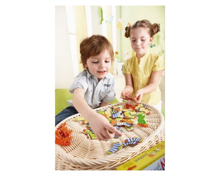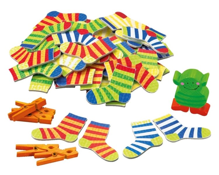 Wer schafft es, besonders viele Paare zu sammeln und so zuerst drei Wäscheklammern zu bekommen? Dafür müssen die Spieler ganz genau hinschauen und blitzschnell reagieren. Die wilde Wühlerei endet, sobald der erste Spieler fünf Paare ergattert und sich das Sockenmonster geschnappt hat.