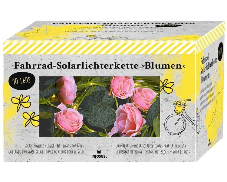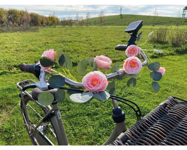 Flower-Power am Fahrradlenker? Mit der Solarlichterkette ist der fröhliche Hippie-Look ganz schnell umgesetzt. Die Lichterkette wird einfach nach Belieben um den Lenker geschwungen, während das Solarpanel mit dem Schraubring sicher befestigt werden kann. Sobald sich die ersten Sonnenstrahlen zeigen, erstrahlt die Lichterkette in ihrem Glanz und Sie ziehen bei der nächsten Fahrradtour ganz sicher bewundernde Blicke auf sich.