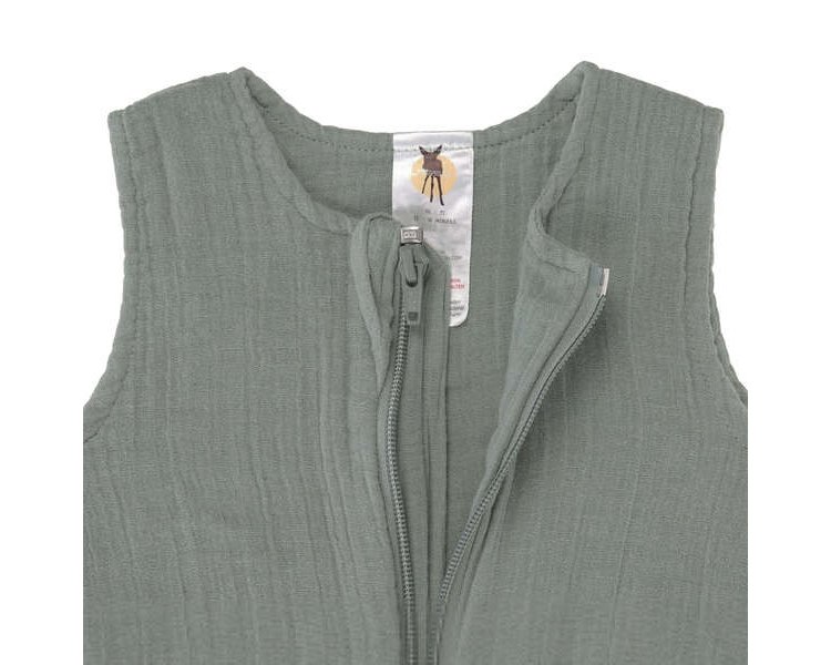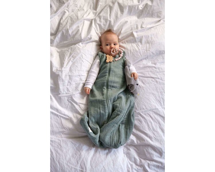 Der ärmellose LÄSSIG Schlafsack für den Sommer aus leichtem, atmungsaktivem Musselin Stoff sorgt für einen entspannten und ruhigen Schlaf. Der hautfreundliche Stoff ist aus 100 % GOTS zertifizierter Bio-Baumwolle hergestellt.