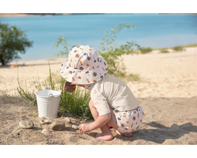 Der LÄSSIG Fischerhut aus recyceltem Polyester ist wendbar und sorgt mit seinen verspielten Prints für unbeschwerte Sommertage. Mit einem UV-Schutz 80 schützt er die empfindliche Kopfhaut von Babys und Kleinkindern im Sommer und ist die ideale Ergänzung zur UV-Badekleidung der LÄSSIG Splash & Fun Kollektion.