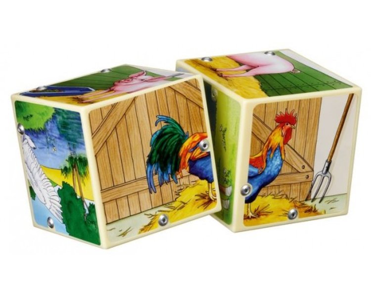 Inhalt: 2 Würfel (7 x 7 cm) mit 6 Illustrationen und Soundchip