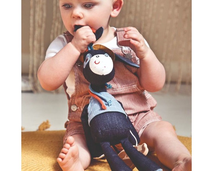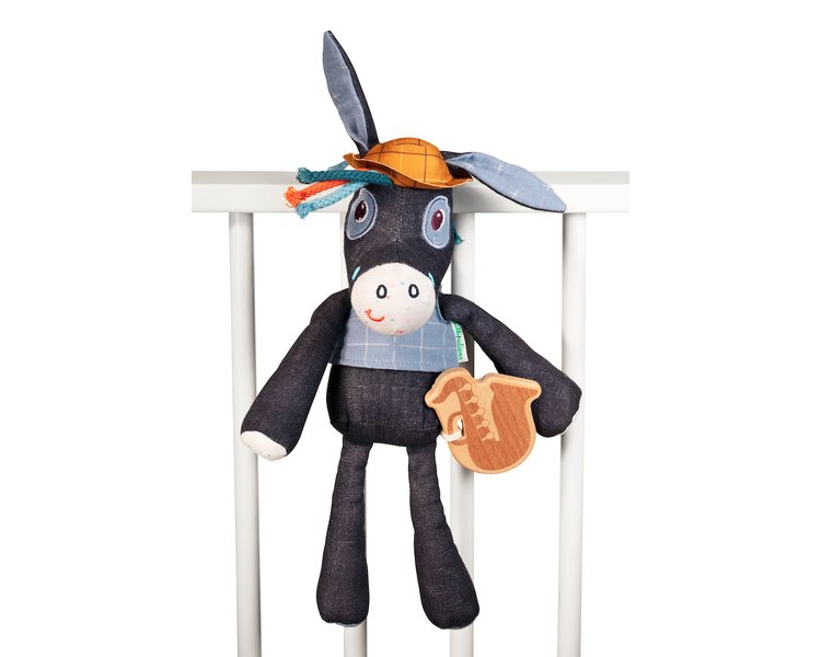 Zur Schlafenszeit zaubert Ignace der Esel sein Saxophon hervor. Er lullt die Kleinen mit der Melodie von „Fly me to the moon“ ein. Aus weicher Bio-Baumwolle. Bei 30 °C leicht waschbar.