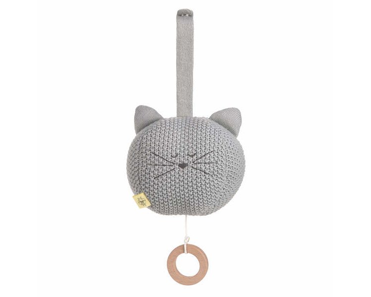 Die Baby Spieluhr aus Strick besteht zu 100 % aus Bio-Baumwolle mit einer Füllung aus Polyester.