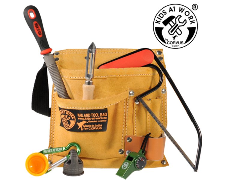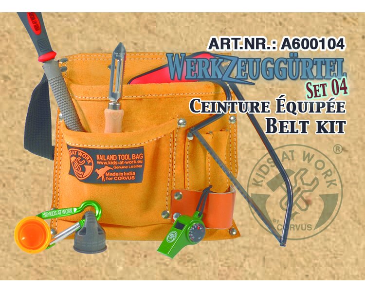 Ein echt lederner Werkzeuggürtel, damit das Werkzeug immer dabei ist. Ausgestattet mit den ersten wichtigen Werkzeugen. Einem Zimmermannshammer, einem Rollgabelschlüssel und drei verschiedenen Schraubenziehern. Somit ist dieses Set ein ideales Geschenk für kleine Basteleinsteiger. Der Werkzeuggürtel ist größenverstellbar, sodass er sowohl kleinen als auch großen Handwerkern passt.